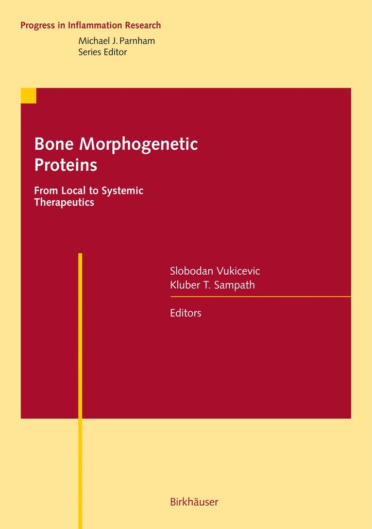 Tissue engineering is gaining interest as it is applied for regeneration of organs to attain their lost function. Although resorbable scaffolds and progenitor cell types are required principles to engineer a functional tissue locally, the inductive signal is a prerequisite to trigger the growth and differentiation of responding cells in space and time. Bone morphogenetic proteins (BMPs), also called growth and differentiation factors (GDFs), originally identified from bone have been successfully used to regenerate the bone in humans. Most recent preclinical data suggests that BMPs have a potential to provide protection against inflammation and fibrosis in acute and chronic injury of parenchymal tissues when applied systemically to sustain the function of kidney and liver. The application of BMPs from a local to systemic utility is a rapidly growing field, gaining interest among researchers and biotech entrepreneurs. In this volume, we summarize the advances made on the local and systemic use of BMPs including chapters covering the regulation of BMP-signalling pathways, biological actions of BMPs in bone, cartilage and teeth, as well as clinical applications and potential systemic use of BMPs for tissues beyond bone. This volume is of interest to researchers from immunology, cell biology, biochemistry, and clinicians from orthopedics and dentistry, as well as to research managers from biotech and pharmaceutical companies.