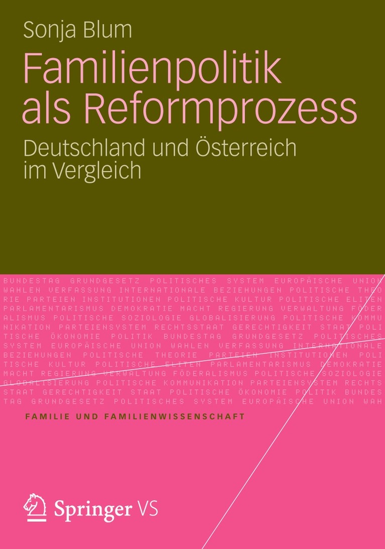 Die Familienpolitik stellte während der letzten Jahre sowohl in Deutschland als auch in Österreich eines der Politikfelder mit der höchsten Reformtätigkeit dar. Für die vergleichende Wohlfahrtsstaatsforschung kam dies überraschend, war doch regelmäßig auf die Reformunfähigkeit der sogenannten konservativen, familialistischen Wohlfahrtsstaaten v.a. im Bereich neuer sozialer Risiken wie der Vereinbarkeit von Familie und Beruf hingewiesen worden. Wie also sind diese plötzlichen, weitreichenden Reformen zu erklären? Um dies zu beantworten, untersucht Sonja Blum die Reformprozesse in der Elternzeit sowie der öffentlichen Kinderbetreuung, darunter z.B. die Einführung des Elterngelds in Deutschland 2007 oder die Einführung des einkommensabhängigen Kinderbetreuungsgelds in Österreich 2010. Das Buch zeichnet ein umfassendes Bild der veränderten Determinanten von Familienpolitik in beiden Ländern, darunter v.a. neue Akteurskonstellationen, neue Ideen sowie vertikale und horizontale Policytransfers im Kontext eines verstärkten familienpolitischen Engagements der Europäischen Union.