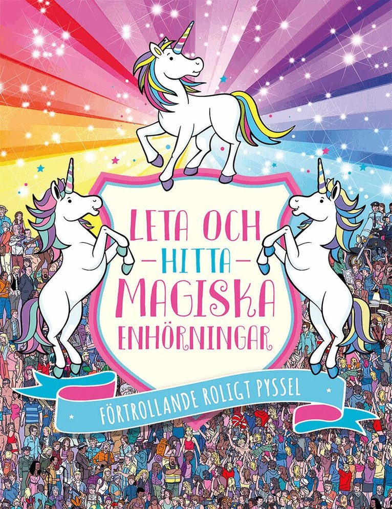 De sju enhörningarna från Regnbågsdalen ger sig av på en resa ut i världen. De 17 rikt detaljerade uppslagen visar scener från världens alla hörn, bland annat London, karnevalen i Rio och pyramiderna i Giza.Men vart tog enhörningarna vägen? Se om du hittar dem i vimlet!