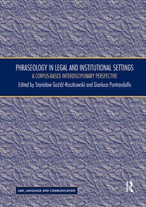 This volume presents a comprehensive and up-to-date overview of major developments in the study of how phraseology is used in a wide range of different legal and institutional contexts. This recent interest has been mainly sparked by the development of corpus linguistics research, which has both demonstrated the centrality of phraseological patterns in language and provided researchers with new and powerful analytical tools. However, there have been relatively few empirical studies of word combinations in the domain of law and in the many different contexts where legal discourse is used. This book seeks to address this gap by presenting some of the latest developments in the study of this linguistic phenomenon from corpus-based and interdisciplinary perspectives. The volume draws on current research in legal phraseology from a variety of perspectives: translation, comparative/contrastive studies, terminology, lexicography, discourse analysis and forensic linguistics. It contains contributions from leading experts in the field, focusing on a wide range of issues amply illustrated through in-depth corpus-informed analyses and case studies. Most contributions to this book are multilingual, featuring different legal systems and legal languages.The volume will be a valuable resource for linguists interested in phraseology as well as lawyers and legal scholars, translators, lexicographers, terminologists and students who wish to pursue research in the area.