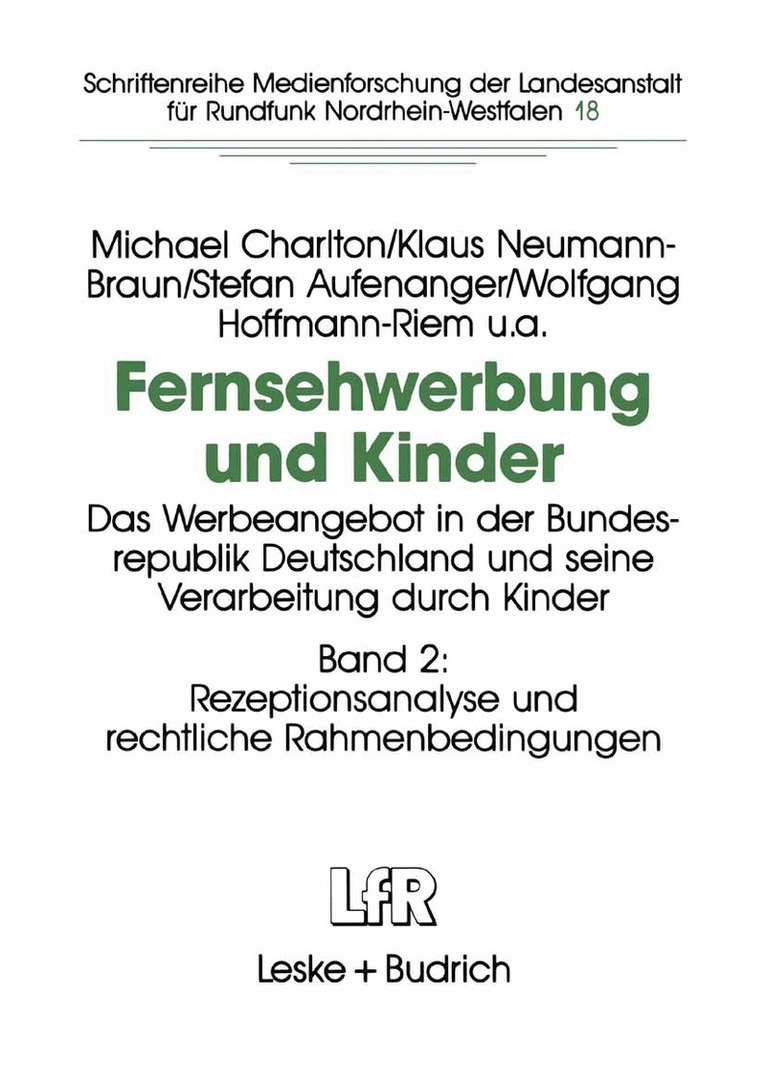 Das Werbeangebot in der Bundesrepublik Deutschland und seine Verarbeitung durch Kinder Band 2: Rezeptionsanalyse und rechtliche Rahmenbedingungen