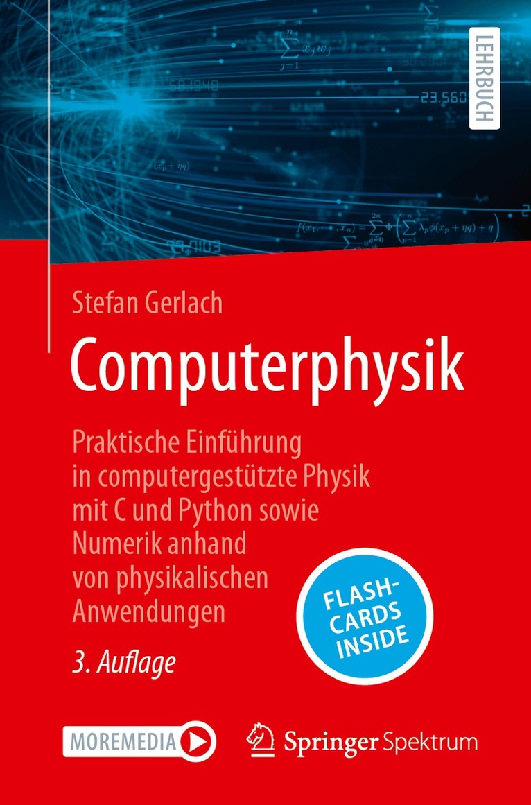 Physikalische Aufgaben mit dem Computer zu lösen, ist eine zunehmend wichtige Kompetenz. Dieses Lehrbuch führt Sie durch alle erforderlichen Schritte, beginnend bei den Grundlagen von Computern über die Programmierung und Datenverarbeitung hin zu den numerischen Methoden bis zu konkreten physikbezogenen Projekten.Besonderheiten:Mit diesem Buch wird das Grundwissen für wissenschaftliches Arbeiten gelegt, denn Begrifflichkeiten wie Datenkompetenz und Forschungsdatenmanagement inklusive Open Science und Gute wissenschaftliche Praxis sind längst nicht mehr aus der Wissenschaft wegzudenken. Kapitelweise wird das Erlernte mit vielen Beispielen, Übungen mit Lösungen, digitalen Karteikarten sowie Online-Programmcodes verdeutlicht und auf bekannte Probleme der Physik angewandt.Der Inhalt:1. Einleitung – 2. Hard- und Software – 3. Datenspeicherung – 4. Arbeiten mit Linux – 5. Programmieren in C – 6. Programmieren in Python – 7. Wissenschaftliches Rechnen – 8. Arbeiten mit Daten – 9. Hochleistungsrechner – 10. Zahlendarstellung und Numerische Fehler – 11. Numerische Standardverfahren – 12. Numerik von gewöhnlichen Differenzialgleichungen – 13. Verfahren der linearen Algebra – 14. Zufallszahlen – 15. Der Oszillator – 16. Nichtlineare Dynamik – 17. Randwertprobleme – 18. Anfangswertprobleme – 19. Eigenwertprobleme – 20. Daten- und Signalanalyse – 21. Stochastische MethodenNeuerungen:In der 3. Auflage wurden alle Kapitel aktualisiert, teilweise erweitert und zwei neue zu Datenspeicherung und Datenverarbeitung ergänzt. Kapitelweise wurden Flashcards und Jupyter Notebooks neu eingeführt.Die Zielgruppe:Dieses Buch ist in erster Linie gedacht für Bachelorstudierende der Physik, aber auch anderer naturwissenschaftlicher Fächer sowie deren Lehrende.Vorkenntnisse:Computerwissen, Linux, C, Python u. Git werden nicht vorausgesetzt. Nur in Projekten wird auf Wissen aus den Grundvorlesungen der Physik zurückgegriffen.