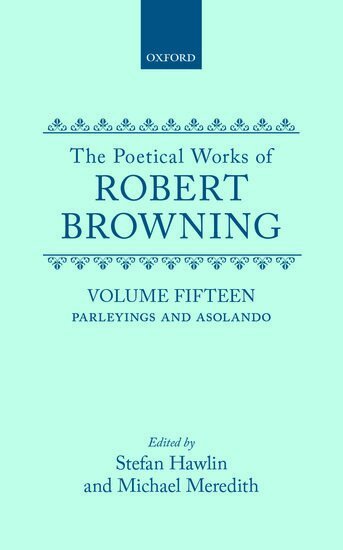 Volume 15 in The Complete Poetical Works of Robert Browning presents poetry Browning wrote in his seventies, his last two volumes: Parleyings (1887) and Asolando (1889). The former is the poet's last sustained meditation on life and on his times, a nine-section credo covering religion, history, poetry, politics, art, and music. Asolando is a coda to his whole oeuvre, a mixture of short love lyrics, historical monologues and anecdotes, light verse, and poems which are quite sui generis, all grouped around the theme of 'fancies and fact'. Both volumes are presented here with previously unknown sources, a wealth of new contextual material, and many textual nuances clarified, giving a fresh view of the last phase of Browning's career. What emerges is a poet more seriously Christian, Protestant, and Liberal than previously supposed, more interested in Britain's destiny and Empire, more enmeshed in the local battles of the 1880s?and a writer of considerable range and wit.
