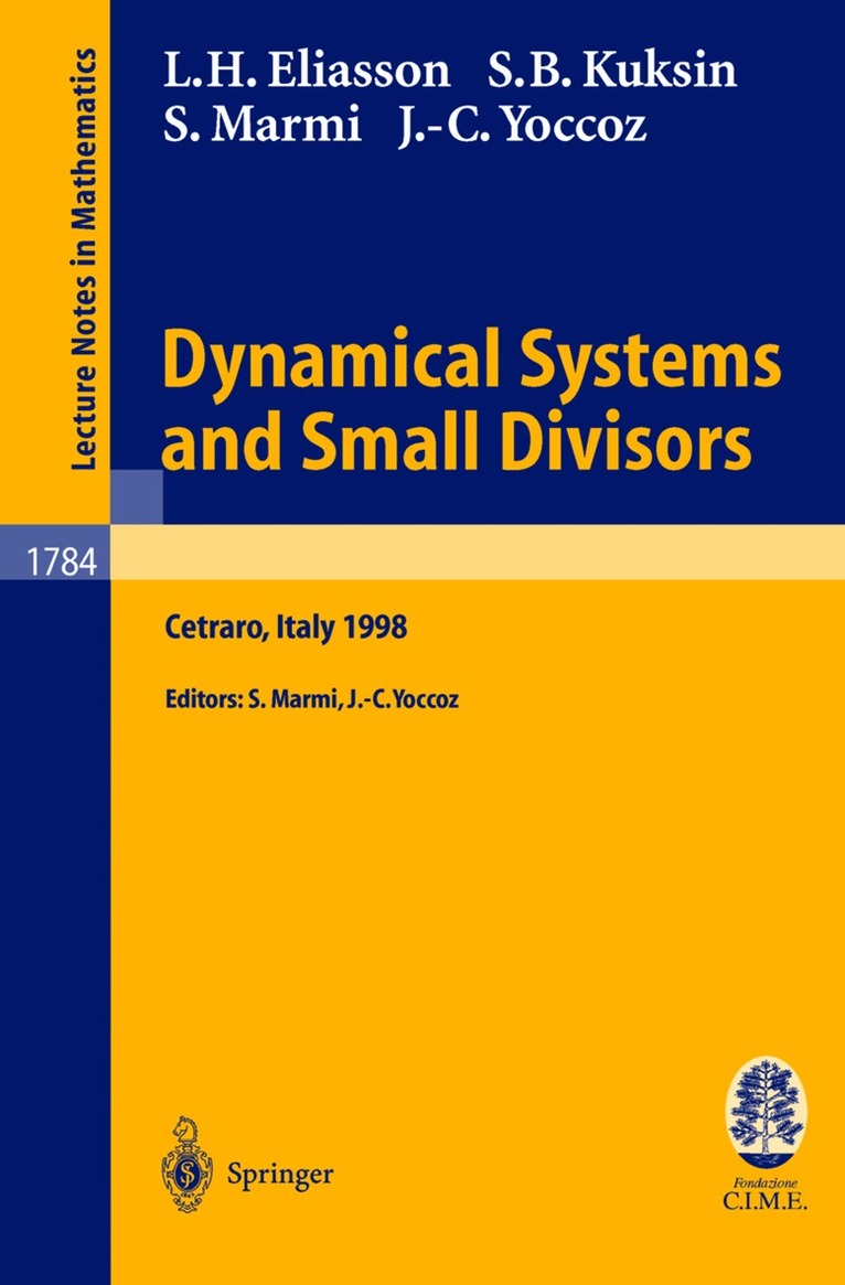 Many problems of stability in the theory of dynamical systems face the difficulty of small divisors. The most famous example is probably given by Kolmogorov-Arnold-Moser theory in the context of Hamiltonian systems, with many applications to physics and astronomy. Other natural small divisor problems arise considering circle diffeomorphisms or quasiperiodic Schroedinger operators. In this volume Hakan Eliasson, Sergei Kuksin and Jean-Christophe Yoccoz illustrate the most recent developments of this theory both in finite and infinite dimension. A list of open problems (including some problems contributed by John Mather and Michel Herman) has been included.