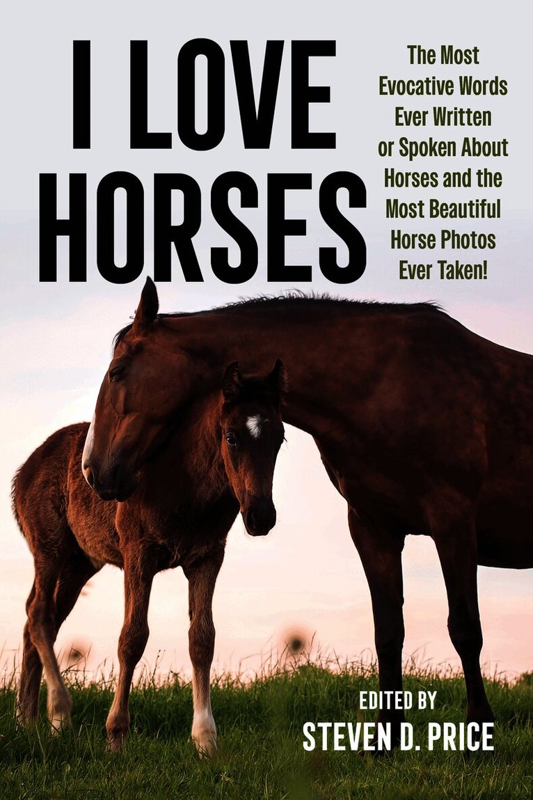 I Love Horses gathers the most memorable quotes about horses ever written, recorded, or carried down through the ages, together with XX fantastic photos of the prettiest horses available. Horses bring out the best in us; they inspire adoration and compassion. They have served as both muse and catharsis for artists and writers of all centuries and genres. Horses illuminate the prose of literary giants - from Homer and Aesop to Steinbeck and Yeats and in sources that range from the Bible and Dante's Inferno to West with the Night, references to horses abound. In I Love Horses, humorous remarks from the likes of Groucho Marx and Henny Youngman share the pages with valuable wisdom on training and horsemanship from widely honored trainers, past and present. What living creature is the most noble of all, and has spurred on great minds throughout history from Shakespeare to Winston Churchill? All hippophiles know the answer. It is the horse, of course. For all those in love with this magnificent animal, I Love Horses will reside close to the heart and never be far away. Includes wisdom from: Dave Barry Napoleon BonaparteLewis CarrollGeoffrey ChaucerCharles DickensEmily DickinsonWalter FarleyW. C. FieldsIan FlemingBenjamin FranklinSamuel JohnsonNikita KhrushchevRudyard KiplingGroucho MarxThomas McGuaneHerman MelvillePlatoDamon RunyonJ. D. SalingerWilliam ShakespeareJonathan SwiftAlfred, Lord TennysonMark TwainVirgil