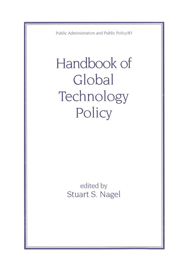 The Handbook of Global Technology Policy presents and compares nonideological resolutions to environmental pollution and toxic waste, urbanization and transportation, homelessness, health-care policies around the world. It provides an evaluation of industrial interventions and energy sources, explores flow control and corporate growth, privatization and liberalization, health data networks, and electronic innovation and governance. Other topics include pharmaceutical policies, the state of science and technology in Africa, the reemergence of tuberculosis, wind energy technology development and diffusion in Inner Mongolia, and major problems of policy implementation in India