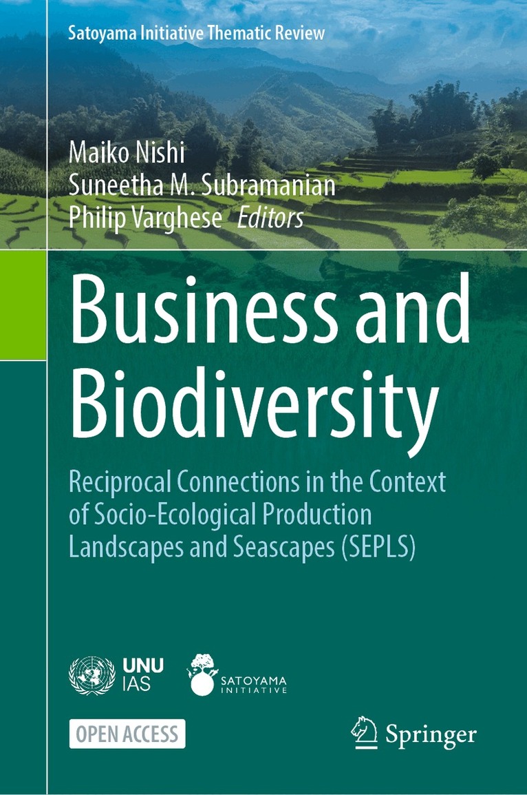 This open access book presents useful knowledge and lessons that derive from on-the-ground activities and contributes to policy recommendations, focusing on the reciprocal connections between business and biodiversity in the context of social-ecological production landscapes and seascapes (SEPLS). It introduces a set of concrete examples demonstrating the relevance of SEPLS to aspects of reciprocal connections between business and biodiversity. The case studies highlight the roles, attitudes, motivations, and actions of multiple stakeholders in conserving biodiversity while providing other benefits that directly or indirectly contribute to businesses. They also illustrate on-the-ground impacts of businesses in SEPLS – including positive and negative ones, providing insights on how to categorize and measure the impacts and dependency of businesses on biodiversity and nature’s contributions to people. This will help facilitate policy learning and evidence-based decision-making to promote the achievement of global goals including the Kunming-Montreal Global Biodiversity Framework and the sustainable development goals (SDGs). Many of the case studies concerning SEPLS management derived from the International Partnership for the Satoyama Initiative (IPSI) provide rich evidence to detail and help clarify the interdependency between businesses and biodiversity while exemplifying innovative solutions to facilitate more sustainable business decisions and actions for socially and ecologically sound outcomes. Furthermore, the experiences in managing SEPLS where multiple actors negotiate and collaborate to meet diverse needs and interests provide practical insights on the roles and responsibilities of stakeholders and how to build partnerships to promote systemic changes towards sustainable futures. The book provides key messages derived from a synthesis of the case study findings, which will help stakeholders including policymakers, scientists, and practitioners to deepen the understanding of reciprocal connections between business and biodiversity and clarify challenges and opportunities for promoting more sustainable businesses and at the same time safeguarding biodiversity and ecosystems. This in turn will help further the science-policy-practice interfaces related to biodiversity, ecosystem services, and sustainable development.