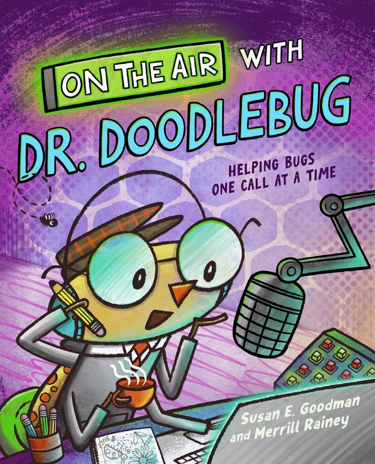From award-winning author Susan E. Goodman comes something really fun: a radio show in a book! Meet our bug expert: Dr. Doodlebug. Dr. D hosts a radio talk show called On The Air With Dr. Doodlebug, where he answers the burning questions bugs have. Why does a caterpillar get SOOO hungry before...changing? How can lightning bugs use less electricity? With terrific repartee and fabulous illustrations, this inviting format, illustrated by Merrill Rainey in comic book style, will enchant bug enthusiasts, their adults, and educators alike. Bring all your questions. Dr. Doodlebug’s got the answers!