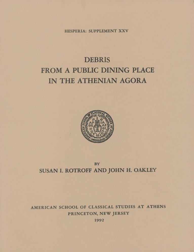 In 1972 a large deposit of pottery and other finds from the mid-5th century B.C. were found in a pit just west of the Royal Stoa in the Athenian Agora. It contained many fragments of figured pottery, more than half of which were large drinking vessels. Twenty-one fragments were inscribed with a graffito known to be a mark of public ownership. The authors conclude that the pottery is refuse from one of the public dining facilities that served the magistrates of Classical Athens. The volume examines the archaeological context and chronology of the deposit and gives a detailed analysis of all the finds. A complete catalogue arranges the finds by type and in chronological order.