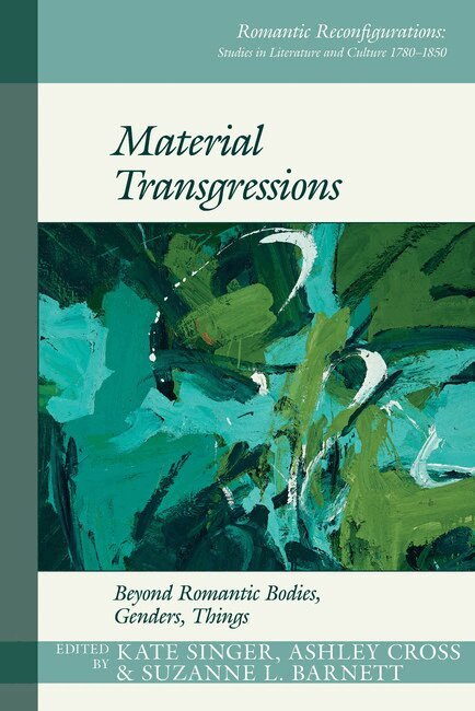 Material Transgressions reveals how Romantic-era authors think outsideof historical and theoretical ideologies that reiterate notions of sexedbodies, embodied subjectivities, isolated things, or stable texts. The essaysgathered here examine how Romantic writers rethink materiality, especially thesubject-object relationship, in order to challenge the tenets of Enlightenmentand the culture of sensibility that privileged the hegemony of the speaking andfeeling lyric subject and to undo supposedly invariable matter, andrepresentations of it, that limited their writing, agency, knowledge, and evenbeing. In this volume, the idea of transgression serves as a flexible and capaciousdiscursive and material movement that braids together fluid forms of affect,embodiment, and textuality. The texts explored offer alternativeunderstandings of materiality that move beyond concepts that fix genderedbodies and intellectual capacities, whether human or textual, idea or thing. Theyenact processes – assemblages, ghost dances, pack mentality, reiterative writing,shapeshifting, multi-voiced choric oralities – that redefine restrictivestructures in order to craft alternative modes of being in the world that canhelp us to reimagine materiality both in the Romantic period and now. Suchdynamism not only reveals a new materialist imaginary for Romanticism but alsounveils textualities, affects, figurations, and linguistic movements that alternew materialism’s often strictly ontological approach.List of contributors: Kate Singer, Ashley Cross, Suzanne L. Barnett, Harriet Kramer Linkin, Michael Gamer, Katrina O’Loughlin, Emily J. Dolive, Holly Gallagher, Jillian Heydt-Stevenson, Mary Beth Tegan, Mark Lounibos, Sonia Hofkosh, David Sigler, Chris Washington, Donelle Ruwe, Mark Lussier.