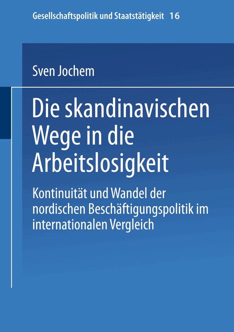 Arbeitslosigkeit ist eines der dringlichsten Probleme in marktwirtschaftlich verfaßten Demokratien am Ende des 20. Jahrhunderts. Nur wenigen Ländern gelang es in den vergangenen Jahren, die Arbeitslosigkeit zu senken. Sehr viele andere Staaten hatten hingegen mit steigenden Arbeitslosenraten zu kämpfen. Zu diesen gehören bis 1994 die skandinavischen Länder. Noch in den achtziger Jahren wurden sie als Beispiele für einen von der Sozialdemo kratie geprägten Weg zur Vollbeschäftigung gepriesen. Weshalb diese Er folgsgeschichte in den frühen neunziger Jahren so jäh zu Ende ging, ist Thema dieses Buches. Der Fokus ist damit eindeutig auf die nordischen Län der gerichtet, es kann jedoch durch die strikt komparatistische Anlage dieser Studie deutlich gemacht werden, daß die Bestimmungsgründe für sinkende Beschäftigung und steigende Arbeitslosigkeit in Skandinavien die Entwick lungen in den übrigen OECD-Staaten mit erklären helfen. Dieses Buch ist die geringfugig überarbeitete Fassung meiner Disserta tion, die im Sommersemester 1997 von der Philosophisch-Historischen Fa kultät der Ruprecht-Karls Universität in Heidelberg angenommen wurde. Während dieser Arbeit habe ich von verschiedenen Seiten Unterstützung und kritische Anteilnahme erhalten, für die ich mich an dieser Stelle herzlich bedanken möchte- ohne dabei die Verantwortung für verbliebene Fehler von mir zu weisen. An erster Stelle sind hier meine beiden Doktorväter zu nennen: Prof. Dr. Manfred G. Schmidt hat den Entstehungsprozeß dieser Arbeit nicht nur aufinerksam und kritisch begleitet.