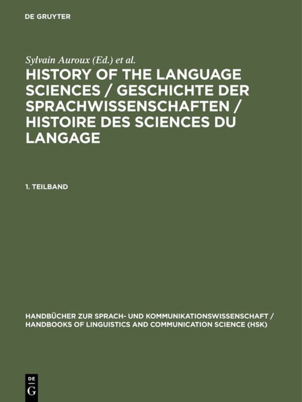 History of the Language Sciences / Geschichte der Sprachwissenschaften / Histoire des sciences du langage. 1. Teilband