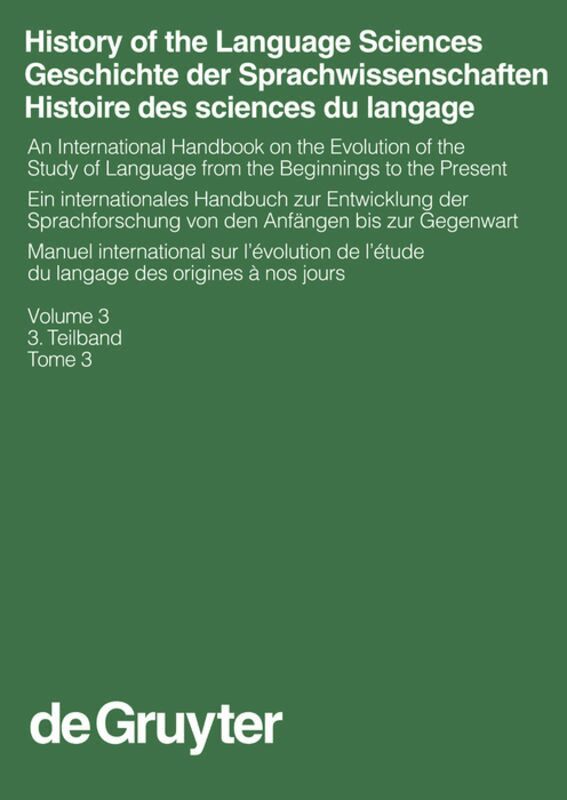 History of the Language Sciences / Geschichte der Sprachwissenschaften / Histoire des sciences du langage. 3. Teilband