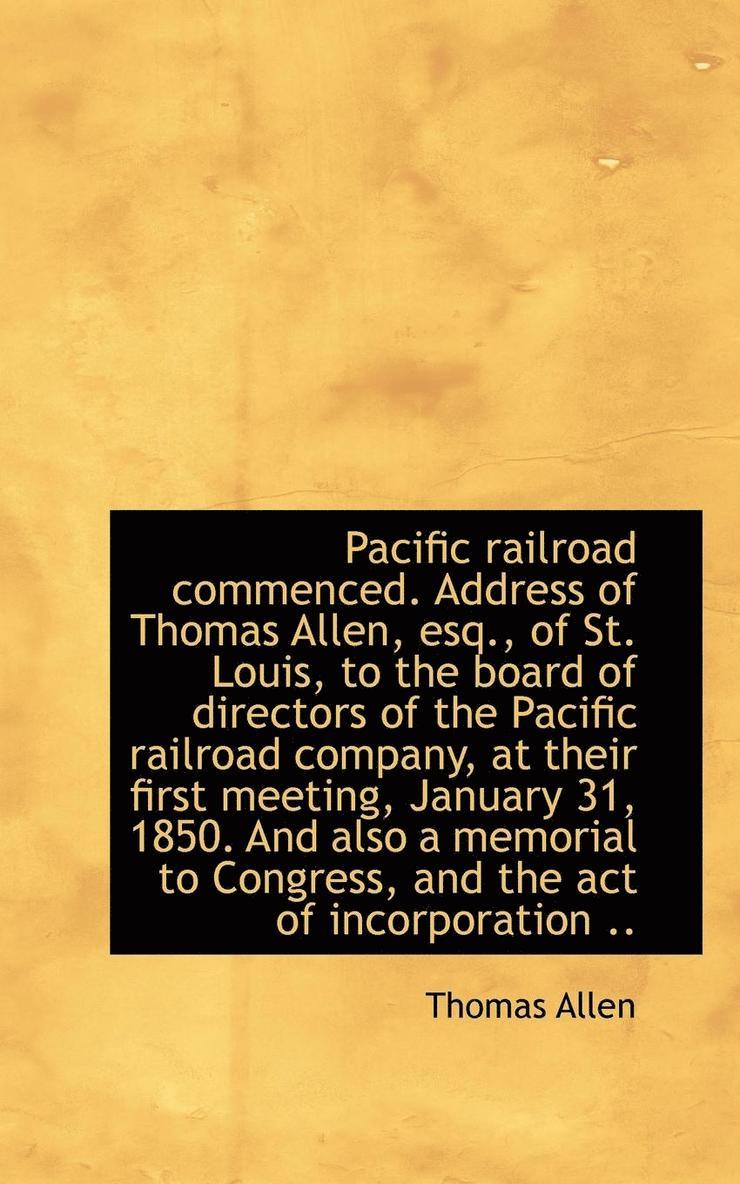 Pacific Railroad Commenced. Address of Thomas Allen, Esq., of St. Louis, to the Board of Directors O