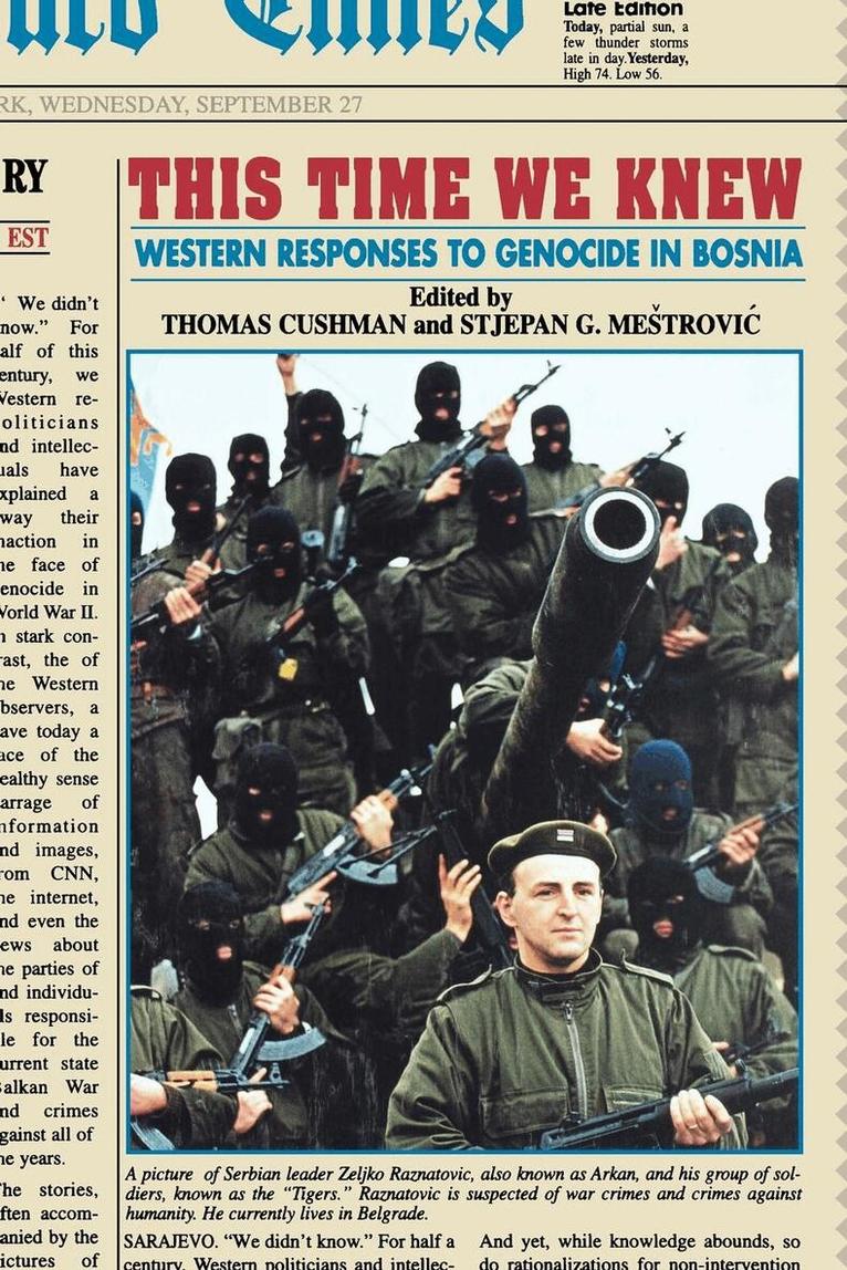 A crafted collection detailing western responses to the Balkan WarWe didn't know. For half a century, Western politicians and intellectuals have so explained away their inaction in the face of genocide in World War II. In stark contrast, Western observers today face a daily barrage of information and images, from CNN, the Internet, and newspapers about the parties and individuals responsible for the current Balkan War and crimes against humanity. The stories, often accompanied by video or pictures of rape, torture, mass graves, and ethnic cleansing, available almost instantaneously, do not allow even the most uninterested viewer to ignore the grim reality of genocide.And yet, while information abounds, so do rationalizations for non-intervention in Balkan affairs—the threshold of real genocide has yet to be reached in Bosnia; all sides are equally guilty; Islamic fundamentalism in Bosnia is a threat to the West; it will only end when they all tire of killing each other—to name but a few.In This Time We Knew, Thomas Cushman and Stjepan G. Mestrovic have put together a collection of critical, reflective, essays that offer detailed sociological, political, and historical analyses of western responses to the war. This volume punctures once and for all common excuses for Western inaction. This Time We Knew further reveals the reasons why these rationalizations have persisted and led to the West's failure to intercede, in the face of incontrovertible evidence, in the most egregious crimes against humanity to occur in Europe since World War II.Contributors to the volume include Kai Erickson, Jean Baudrillard, Mark Almond, David Riesman, Daniel Kofman, Brendan Simms, Daniele Conversi, Brad Kagan Blitz, James J. Sadkovich, and Sheri Fink.