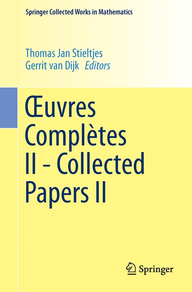 In addition to the reproduction of Stieltjes' papers (I–XLVII), Volume I includes about 75 pages of commentaries by contemporary mathematicians on Stieltjes' work.
