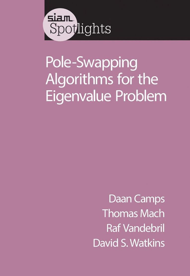 Matrix eigenvalue problems arise in a wide variety of fields in science and engineering, so it is important to have reliable and efficient methods for solving them. Of the methods devised, bulge-chasing algorithms, such as the famous QR and QZ algorithms, are the most important. This book focuses on pole-swapping algorithms, a new class of methods that are generalizations of bulge-chasing algorithms and a bit faster and more accurate owing to their inherent flexibility. The pole-swapping theory developed by the authors sheds light on the functioning of the whole class of algorithms, including QR and QZ.The only book on the topic, Pole-Swapping Algorithms for the Eigenvalue Problem describes the state of the art on eigenvalue methods and provides an improved understanding and explanation of why these important algorithms work.AudienceThis book is for researchers and students in the field of matrix computations, software developers, and anyone in academia or industry who needs to understand how to solve eigenvalue problems, which are ubiquitous in science and engineering.