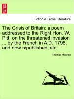 A Poem Addressed to the Right Hon. W. Pitt, on the Threatened Invasion ... by the French in A.D. 1798, and Now Republished, Etc.