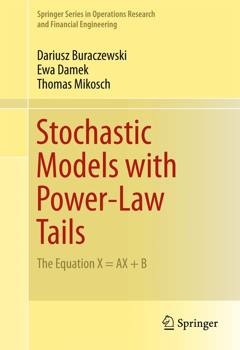 In this monograph the authors give a systematic approach to the probabilistic properties of the fixed point equation X=AX+B. A probabilistic study of the stochastic recurrence equation X_t=A_tX_{t-1}+B_t for real- and matrix-valued random variables A_t, where (A_t,B_t) constitute an iid sequence, is provided. The classical theory for these equations, including the existence and uniqueness of a stationary solution, the tail behavior with special emphasis on power law behavior, moments and support, is presented. The authors collect recent asymptotic results on extremes, point processes, partial sums (central limit theory with special emphasis on infinite variance stable limit theory), large deviations, in the univariate and multivariate cases, and they further touch on the related topics of smoothing transforms, regularly varying sequences and random iterative systems.The text gives an introduction to the Kesten-Goldie theory for stochastic recurrence equations of the type X_t=A_tX_{t-1}+B_t. It provides the classical results of Kesten, Goldie, Guivarc'h, and others, and gives an overview of recent results on the topic. It presents the state-of-the-art results in the field of affine stochastic recurrence equations and shows relations with non-affine recursions and multivariate regular variation.