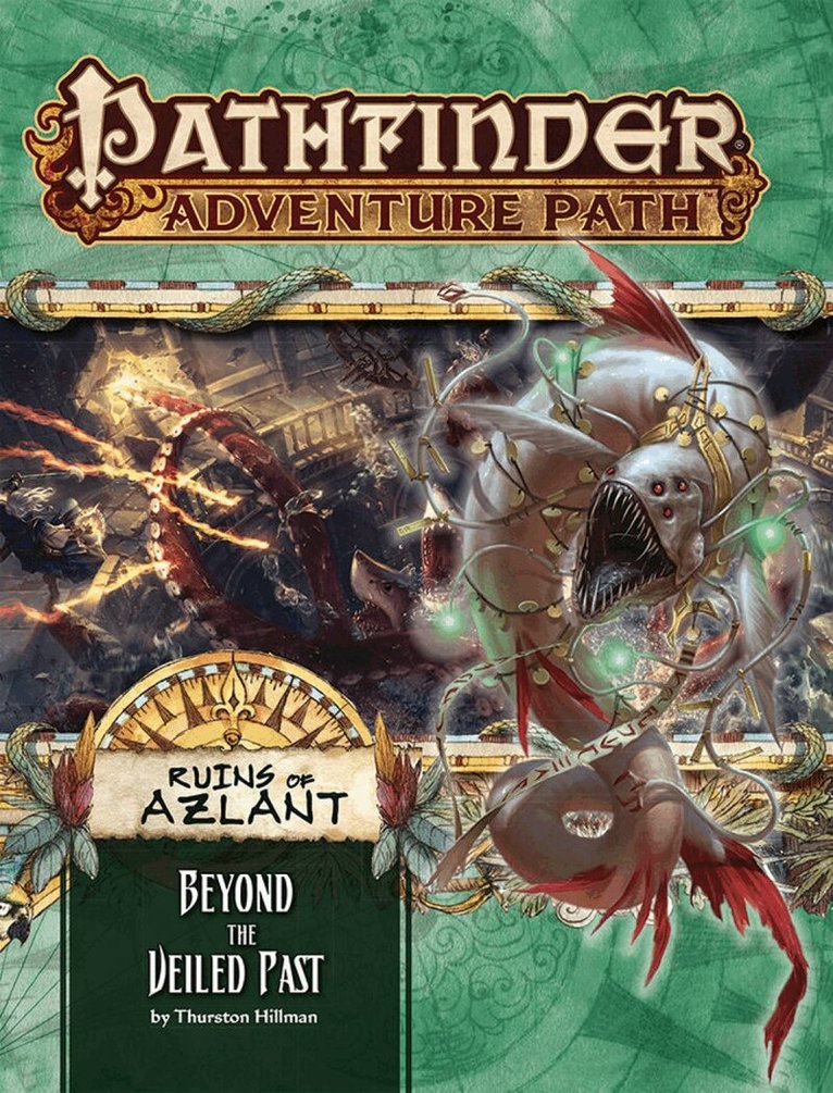 The insidious veiled masters who sunk Old Azlant beneath the treacherous ocean in ancient times mobilize their forces against the heroes’ allies, even as the adventurers themselves close on their enemies for a final confrontation. After preparing their allies for the impending assault, the heroes must fight their way through the submerged ruins of an ancient weapons facility packed with dangerous guardians and unstable magic to stop their monstrous foes before the veiled masters unleash a devastating eldritch attack to exterminate humanity and plunge the world into darkness just as they did when they brought Azlant to ruin so long ago.“Beyond the Veiled Past” is a Pathfinder Roleplaying Game adventure for 15th-level characters. The adventure concludes the Ruins of Azlant Adventure Path, a search for lost lore and ancient treasures in the ruins of a shattered empire. A selection of new monsters, suggestions on how to expand your Ruins of Azlant campaign, a look into the sinister plots of the veiled masters, and guidance on how to play a campaign in historical Azlant round out this volume of the Pathfinder Adventure Path.Each monthly full-color softcover Pathfinder Adventure Path volume contains an in-depth adventure scenario, stats for several new monsters, and support articles meant to give Game Masters additional material to expand their campaign. Pathfinder Adventure Path volumes use the Open Game License and work with both the Pathfinder RPG and the world’s oldest fantasy RPG.