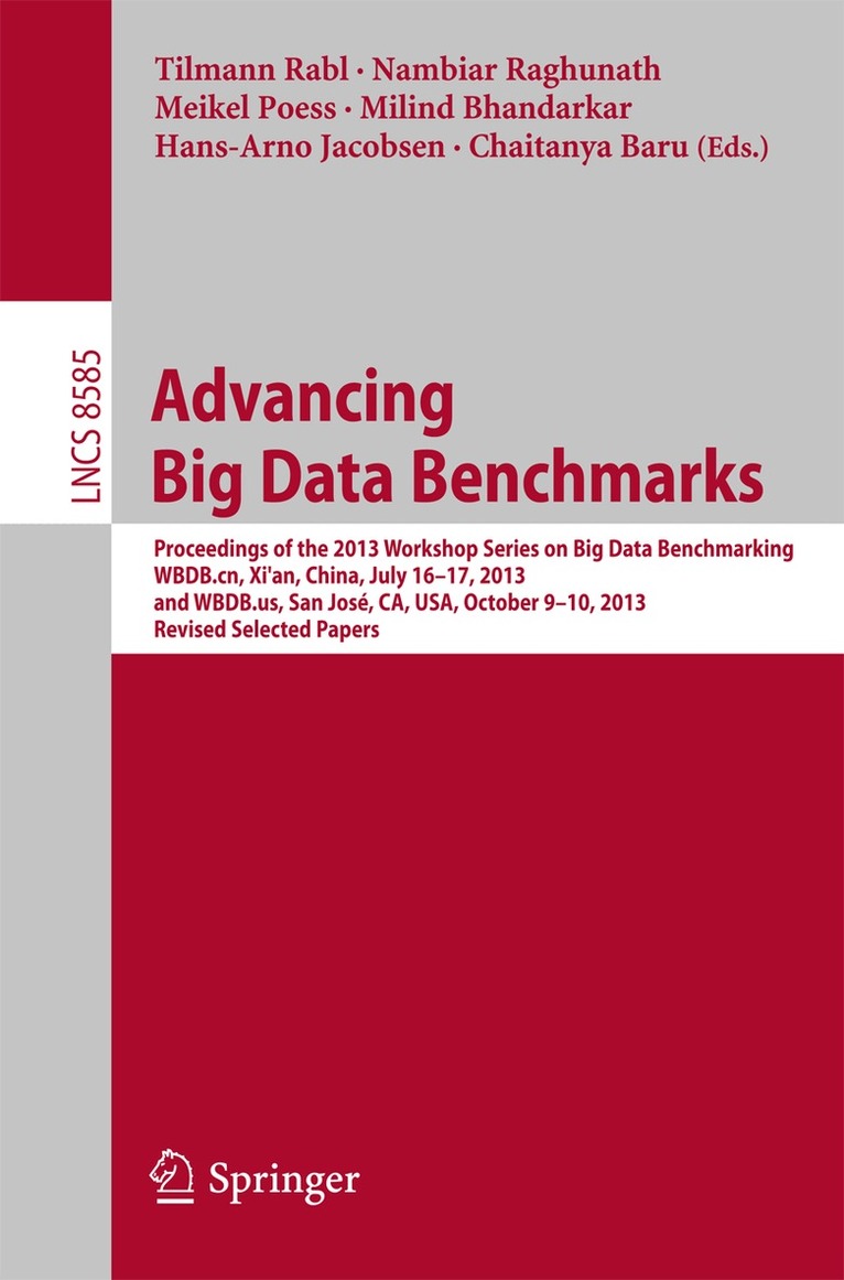 This book constitutes the thoroughly refereed revised selected papers of the First Workshop on Big Data Benchmarks, WBDB 2012, held in San Jose, CA, USA, in May 2012 and the Second Workshop on Big Data Benchmarks, WBDB 2012, held in Pune, India, in December 2012.The 14 revised papers presented were carefully reviewed and selected from 60 submissions. The papers are organized in topical sections on benchmarking, foundations and tools; domain specific benchmarking; benchmarking hardware and end-to-end big data benchmarks.