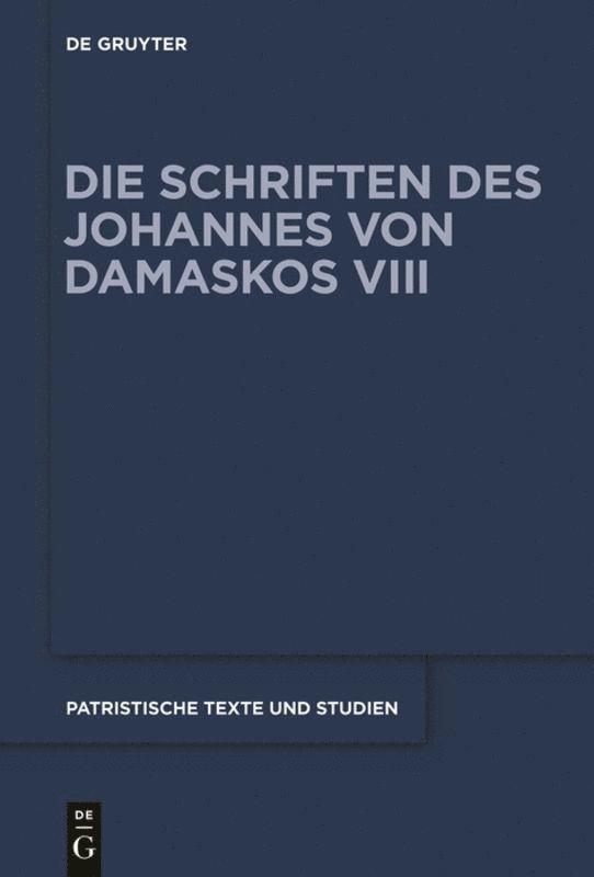Volumes VIII / 4 and 5 include a reconstruction of the first and second version of the second book (On Man) of the Sacra (Paralella), a florilegium compiled by a monk named John at the beginning of the 7th century, erroneously attributed to John of Damascus. The version includes 2293 texts taken from the Bible, the Church Fathers, Philo of Alexandria, and Flavius Josephus.
