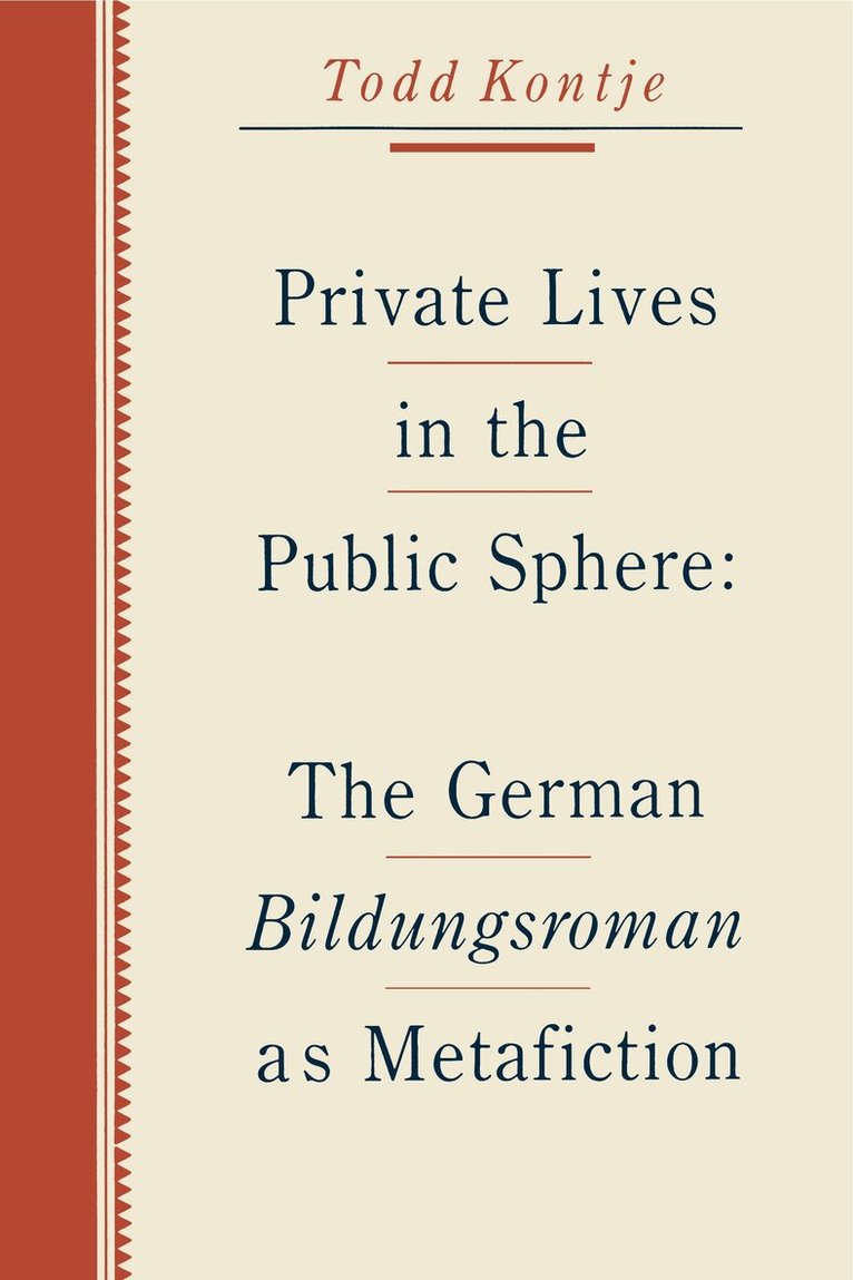 Private Lives in the Public Sphere examines the Bildungsroman in the context of the rapid changes that affected the German literary revolution that made up for its belatedness in its rapidity and scope. The nature and quantity of reading material produced, the social status of the writer, and the reading habits of the public changed dramatically within a few decades. At the beginning of the century the new texts that appeared at the annual book fairs were primarily written in Latin and devoted to theology. By the end of the century the number of new publications each year has increased almost exponentially, with the novel leading the way. This new institution of literature constituted an important part of what Jürgen Habermas has termed the "public sphere," a forum for public debate in which members of the middle class, although still limited in their direct access to political power, could at least begin to articulate their problems and formulate their hopes. The Bildungsroman emerged during this period.This study focuses on moments of literary self-consciousness in the Bildungsroman as reflections on the rapid transformation of the German literary institution. The novels are viewed as examples of what Patricia Waugh has called "metafiction," that is, "fictional writing which self-consciously and systematically draws attention to its status as an artifact in order to pose questions about the relationship between fiction and reality." By concentrating on the interaction between literary form and institutional context in these novels, it becomes possible to mediate between the extremes of those who would view literature as a mere reflection of historical conditions and those who would maintain the purity of the aesthetic object. Literature in this view neither re-creates reality nor does it escape reality; instead, it transforms reality, and the Bildungsroman is the genre that examines this transformation.