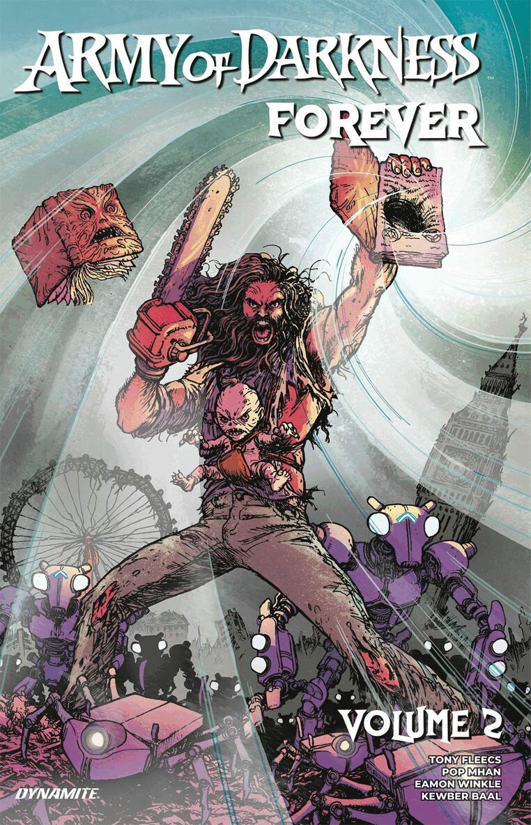 The legendary Ash Williams has never faced anything like the Necronomicon Baby — and he has definitely seen some freaky-ass things in his time! Naturally, as per usual for the Chosen One, things are about to go from bad to worse — across the past, present, and future!Continuing the action after Army of Darkness: The Director’s Cut’s cliffhanger ending, Army of Darkness Forever #7 from writer TONY FLEECS and artist POP MHAN.