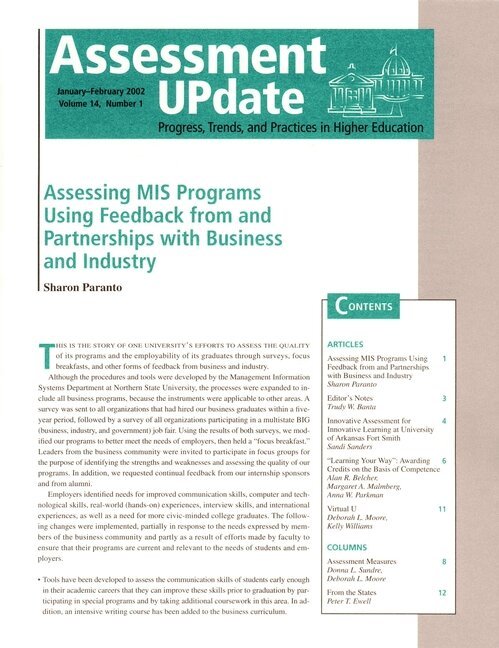 Assessment Update: Progress, Trends, and Practices in Higher Education, Volume 14, Number 1, 2002