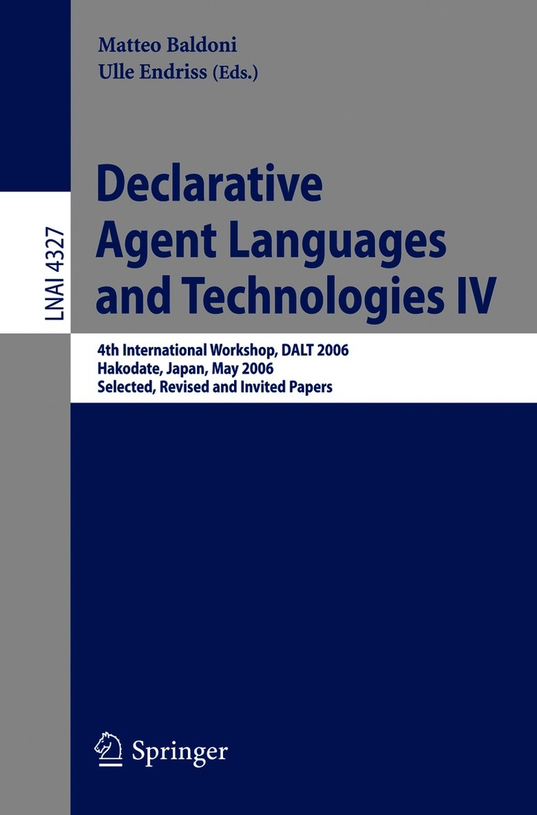 This book constitutes the thoroughly refereed post-proceedings of the 4th International Workshop on Declarative Agent Languages and Technologies, DALT 2006, held in Japan in May 2006. This was an associated event of AAMAS 2006, the main international conference on autonomous agents and multi-agent systems. The 12 revised full papers presented together with one invited talk and three invited papers were carefully selected for inclusion in the book.