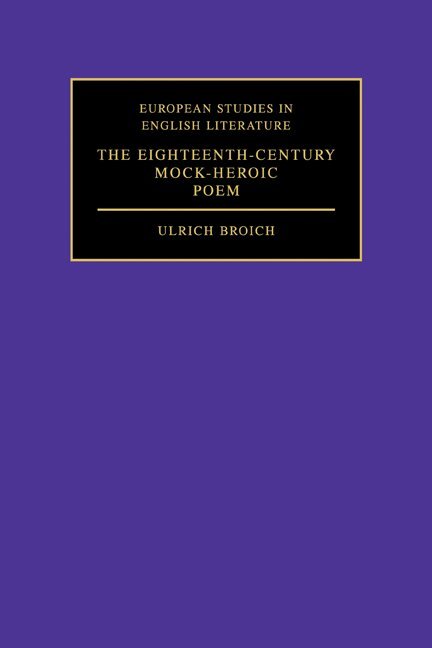 Mock-heroic poetry is one of the most characteristic genres of English neoclassicism in the eighteenth century. Derived from French models, the mock-heroic became something more than merely a parody of the serious epic: relieved of its gravity, it was nevertheless a legitimate and independent form of epic poetry. This book is the first comprehensive study of the theory, the conventions and the history of the mock-heroic genre. In the first part, Ulrich Broich shows how mock-heroic poetry combines the characteristics of various discourses - epic, comedy, parody, satire and occasional poetry. The 'polyphonic' genre which emerges from this analysis stands in ironic contrast to the neoclassical ideal of decorum in a harmonious unity of discourse and form. The second part traces the history of mock-heroic poetry: its foreign sources, its beginnings in England, the 'rivalry' with other forms of comic narrative, and its decline in the second half of the eighteenth century.