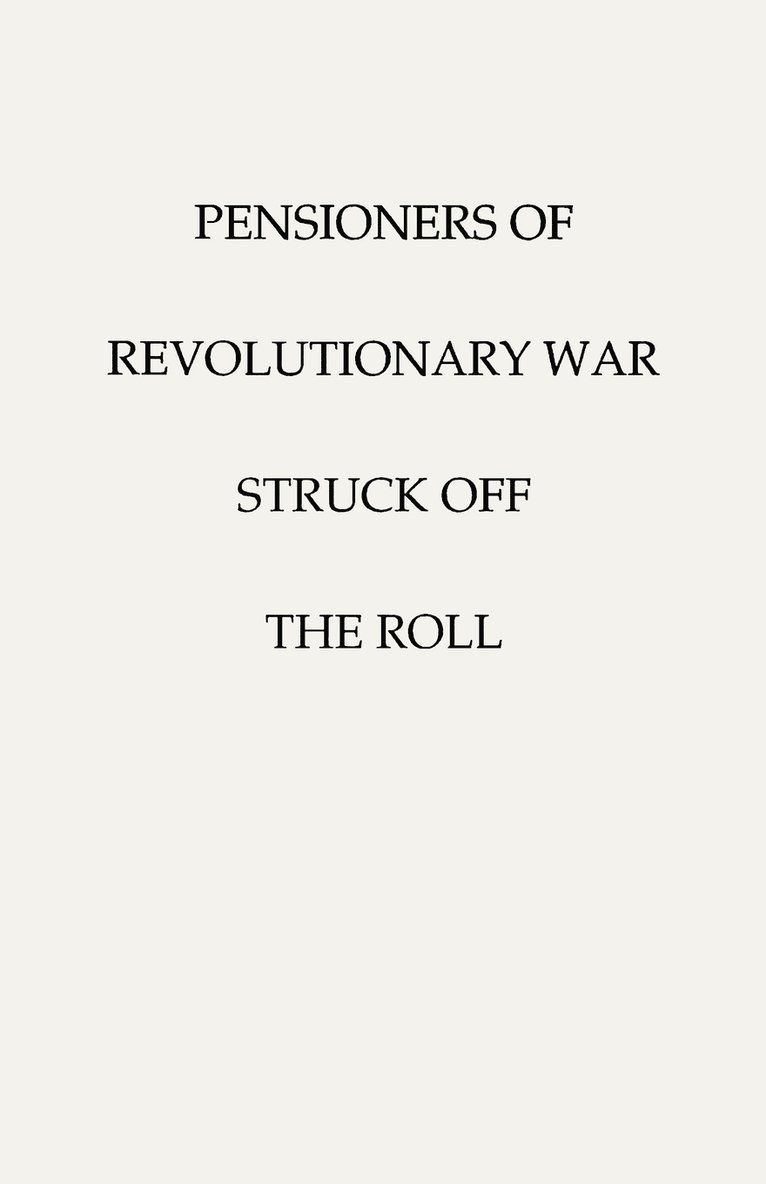 Pensioners of [the] Revolutionary War, Struck Off the Roll. With an Added Index to States