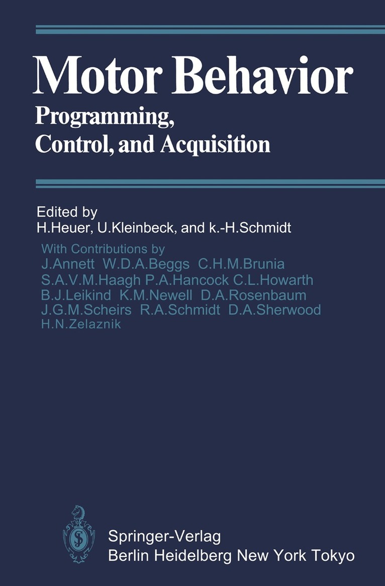 In recent years there has been steadily increasing interest in motor behavior and a growing awareness that a person not only has to know what to do in a particular situation, but also how to do it. The question of how actions are performed is of central concern in the area of motor control. This volume provides an advanced-level treatment of some of the main issues. Experiments concerned with basic processes of motor control typ ically examine very simple movements. At first glance these tasks appear to be far removed from real-world tasks, but it should be kept in mind that they are not studied for their own sake. One of the main reasons for using them is the well-recognized, but sometimes questioned, scientific principle that basic laws may be discovered more easily in simple situations than iIi complex situations. Another reason is that the simple tasks studied constitute building blocks of more complex tasks. For example, some complex skills can be consid ered as consisting of sequences of aimed movements, although, as no one would doubt, knowing everything about these individual movements does not mean knowing everything about, for example, typing. The first two chapters of the present volume focus on behavioral and physiological studies of programming and preparation of move ments. In the first chapter D. Rosenbaum introduces the concept of a motor program that is set up in advance of the overt movement.