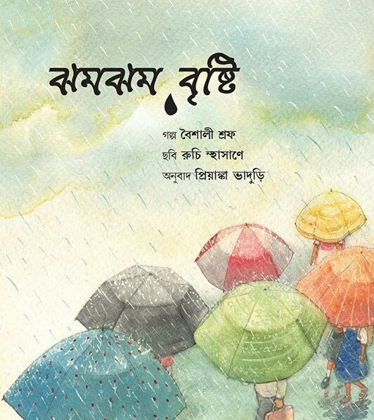 Det öser ner regn. Från sitt fönster ser lilla Anju bekanta scener från en regnig dag – molniga himlar, paraplyer, vattenpölar... Men hennes nyfikna ögon upptäcker också andra överraskningar, medan hennes fantasi leker med regndropparna som glider ner längs fönsterrutan. Mjuka akvareller genomblöder sidorna med en känsla av en blöt, blöt dag.