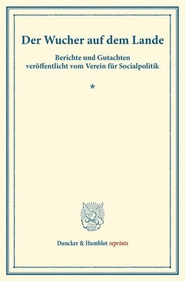 Der Wucher Auf Dem Lande: Berichte Und Gutachten Veroffentlicht Vom Verein Fur Socialpolitik. (Schriften Des Vereins Fur Socialpolitik XXXV)