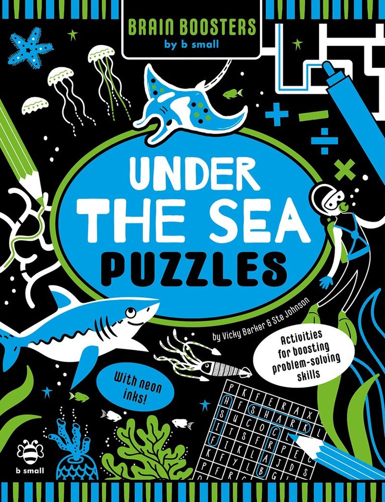Boost your problem-solving skills with b small! These bright, bold and FLUORESCENT puzzles and activities will spark your creative brain, stretch that maths muscle and nurture a love of logic. There are fascinating ocean and under the sea facts too! Contains mazes, pattern sequences, maths problems, join the dots, word searches, matching games, quizzes, spot the difference and much more.