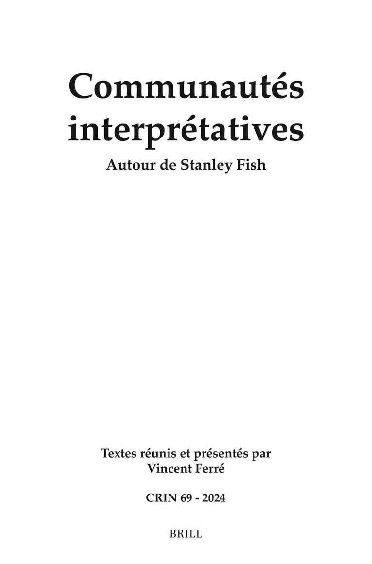 Ce volume interroge les conditions de l’interprétation des textes littéraires, à la lumière des propositions de Stanley Fish sur L’autorité des communautés interprétatives (1980): leurs présupposés, leurs compétences et croyances, conditionnent l’activité herméneutique, interrogée ici par des spécialistes de littérature française, espagnole ou comparée. Réfléchir au fonctionnement concret de telles communautés – création, renouvellement, adhésion, dissidence, relation concurrentielle entre communautés, volonté d’imposer une interprétation… –, amène à envisager des implications en termes de libre arbitre et d’individualité essentielles pour nos disciplines, et à repenser les relations entre texte, auteur et lecteurs, parfois en opposant des objections nouvelles aux postulats de Fish, parfois en proposant des alternatives.