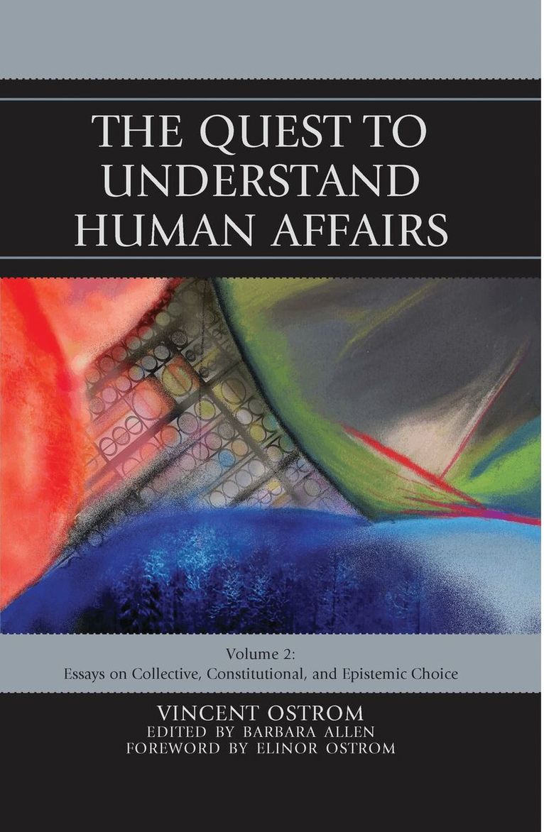 The second volume of The Quest to Understand Human Affairs presents thirty-six previously unpublished manuscripts written by Vincent Ostrom, cofounder of the Workshop in Political Theory and Policy Analysis. The essays are divided among three parts: Constitutional Choice, Epistemic Choice, and The Quest for Understanding and the Future of Democratic Self-Governance. Part I, Constitutional Choice, includes studies on public sector performance and the constitutional dilemmas facing the Federal Republic of Nigeria, the North American “New World” of US constitutionalism, and the United States of Mexico. In the essays of Part II, Ostrom turns to the foundational ideas on which the institutions of a particular culture rest. He raises questions about the methodologies of the social sciences and insists that we return to “basic questions” in our search for institutional forms that will liberate human communities. Part III offers the reader a colloquy on self-governance in which Ostrom’s speeches and presentations on a variety of twenty-first-century issues are supplemented with letters and memos between Ostrom and visiting scholars and students. These remarkable works not only offer specialists insight into developments in the fields of institutional analysis, resource governance, policy and administration—during the second half of the twentieth century and first decade of the new millennium—but also speak to general readers about worldwide transformations in democracies and human and environment relations as well as the enduring challenge of sustaining just, productive political orders. The Quest to Understand Human Affairs is introduced with a foreword by Nobel Laureate and co-founder of the Workshop in Political Theory and Policy Analysis, Elinor Ostrom, with a preface by the editor of the volume, political theorist Barbara Allen.