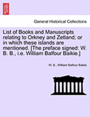 List of Books and Manuscripts Relating to Orkney and Zetland; Or in Which These Islands Are Mentioned. [The Preface Signed: W. B. B., i.e. William Bal