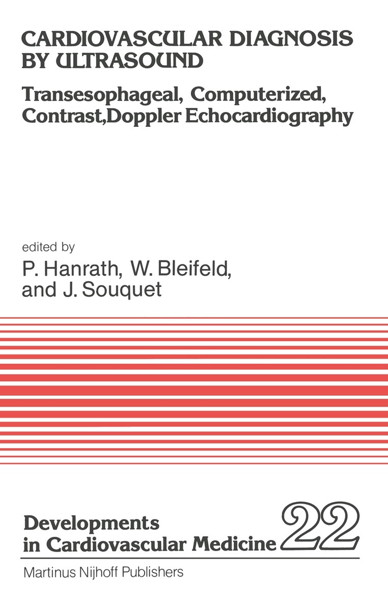 Echocardiography has recently become one of' the most important techniques in clinical cardiology. The major advantage of this method is its noninvasive nature enabling us to apply it under a widespread variety of clinical conditions. In the late 1960s, when research and clinical application of echo cardiography were started, and during the first decade investigations were mainly focused on the morphology of the valves and the chambers of the heart. The introduction of two-dimensional echocardiography was a major breakthrough in visualizing different portions of the heart. How ever, the poor resolution of the first devices provided only little qualitative information. With the introduction of phased array 2-D-echo-devices yielding better results and the application of computer techniques for the processing of M-mode and two-dimensional echo cardiograms, a great amount of qualitative information has become available to describe not only the morphology, but also the dynamic function of the heart in a noninvasive manner. This volume summarizes the lectures held at the International Symposium on Echocardiography, Hamburg, September 1978, endeavoring to review the current state of knowledge with regard to echo cardiography in the experimental and clinical setting. We herewith thank all lecturers, who have contributed to the publication and the Pharma-Schwarz Company which enabled us to organize this meeting by a generous subsidy.