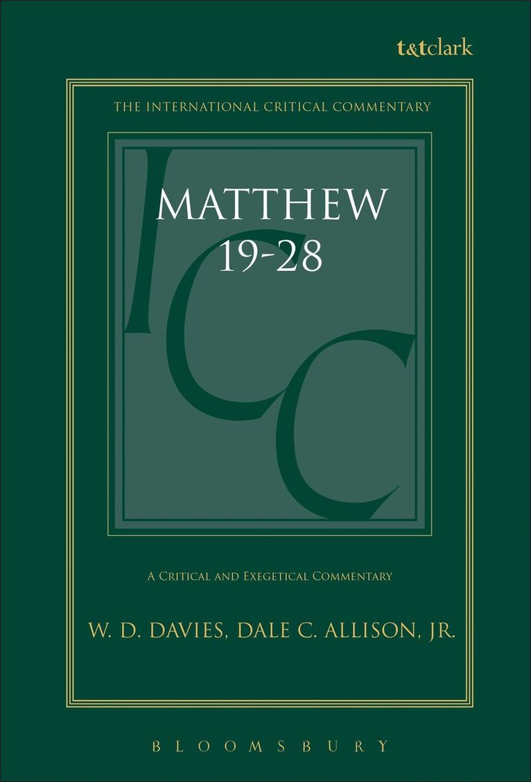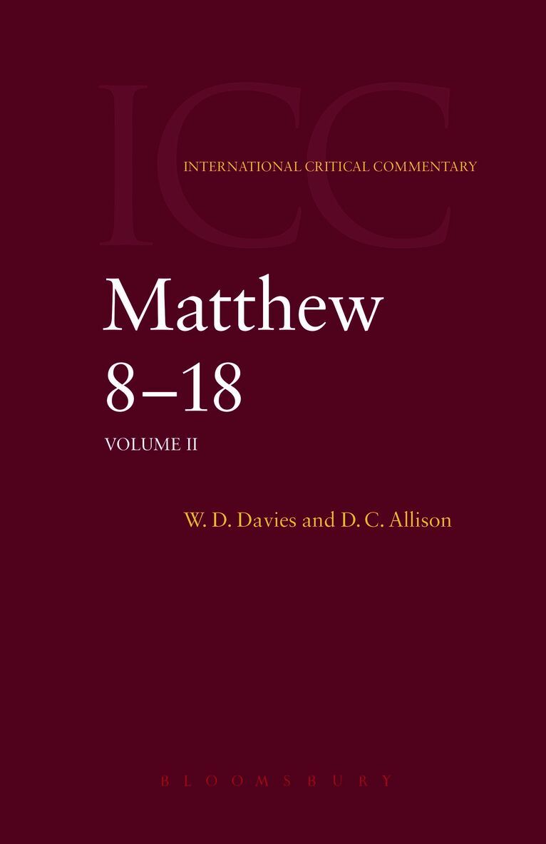 How should this massive work of scholarship be assessed? The three volumes stand as one of the major commentaries on the Gospel of Matthew in which all future interpreters of the Gospel will find a source of fruitful dialogue and helpful ideas. It is a "must have", both in libraries and in footnotes. Davies and Allison are to be thoroughly commended on the fruits of their considerable toil.' Robert K. McIver, Seminary Studies