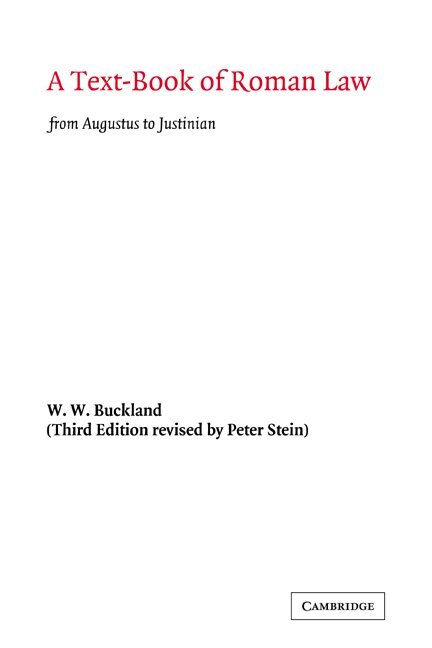 Roman Law, since its earliest days of the XII Tables, to the Justinian code over one thousand years later, is arguably the most influential body of law ever developed, remaining at the core of European legal systems until the end of the eighteenth century and informing the civil law and (to a lesser extent) the common law to this day. The first edition of Peter Buckland's classic textbook on the subject was published in 1921. Professor Peter Stein's revised third edition published in 1963 updated the original so that it reflected Professor Buckland's own later thoughts on the subject until his death in 1945. This revised edition examines the law of the Empire (or classical law) and also tracks later developments, including the legislation of Justinian. It is primarily concerned with the law but historical developments are also kept in view, so as to give the student the broadest perspective on the subject.