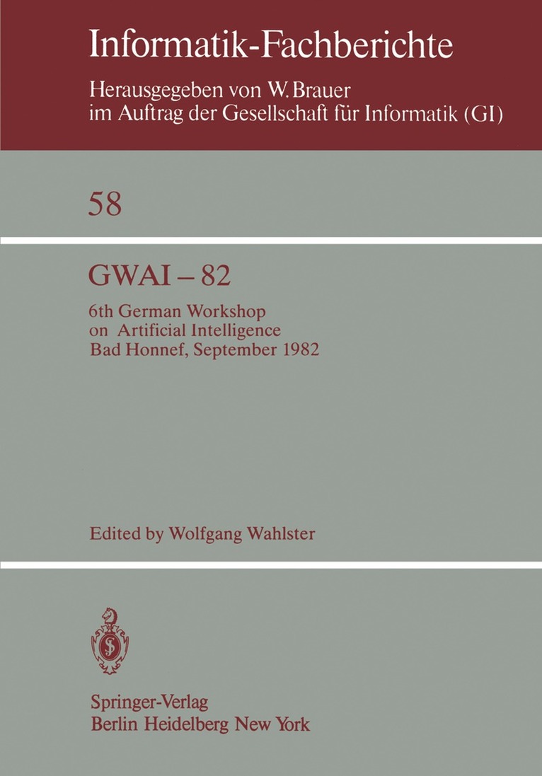 6th German Workshop on Artificial Intelligence Bad Honnef, Sept. 27. – Oct. 1, 1982