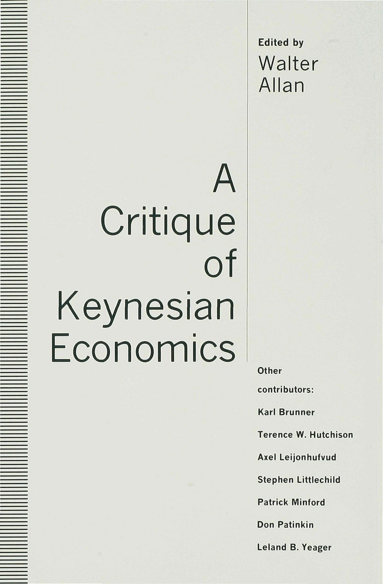 This book brings together articles by international political economists on Keynesian economics and its legacy. The book begins with Don Patinkin's assessment of Keynes' early life and focuses attention on Keynes' contribution to monetary economics. Among the many controversies surrounding "The general theory", Axel Leijonhufvud takes the view that the Keynesian revolution began and stayed on the wrong track. Leland Yeager refutes the idea that Keynesian economics was responsible for the general prosperity in the indusrialized world immediately after the Second World War. Although Karl Brunner is not fundamentally against Keynes' methodological approach, he is critical of his reliance on fiscal rather than monetary policy. Whereas Terence Hutchison defends Keynes, both against his critics but also against Keynesians, and argues that Keynes would not have shared their interpretation of his work on fundamental grounds. Patrick Minford traces the roots of neoclassical economics, based on the concept of rational expectations, back to "the general theory". In the final chapter, Stephen Littlechild offers an alternative to Keynesian economics by focusing attention on the Austrian school.This book represents, therefore, for the first time a collection of appraisals of Keynesian economics' impact theory and policy that will be of use to all students of macroeconomics and the history of economic thought. Walter Allan is publishing director for the Institute of Economic Affairs in London and has held senior editorial positions with Allen and Unwin and Macmillan. He is the author of "Concise 'A' level Economics", "Economics at University" and co-author of "Competition and Choice in the Publishing industry".