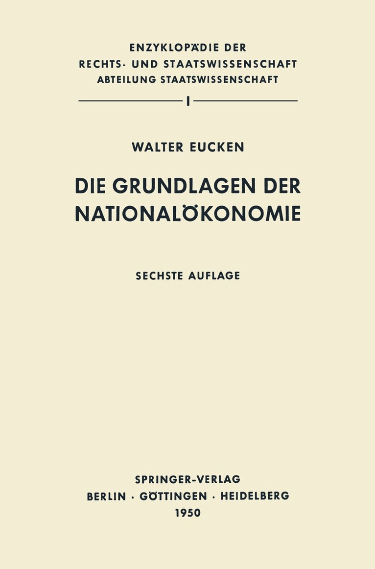 THE FIRST GERMAN edition of this book appeared in 1940. Since then the book has gone through five more editions and has been translated into Spanish and Italian. The present English translation is based on the sixth German edition. The author was Professor of Economics at the University of Freiburg, Germany. Professor Eucken was a student at a time when the Historical School dominated the teaching of econo mics at the German universities. Although, at the beginning of his career, he did some work along the lines of the Historical School, neither the ~ims nor the methods of historical research the field of economics as practised by the representatives in of the Historical School satisfied him; and the fact that the members of this school were unable to explain the causes of economic events such as the German inflation after World War I was an added reason for him to turn to economic theory. He became, among German economists, the foremost opponent of the Historical School, which he criticised in several publica tions. Through his wrItings and his teaching he contributed his share to the revival of interest in economic theory which was noticeable in the 'twenties. And he was one of the few economists left in Germany who helped to keep this interest alive during the 'thirties and during World War II. During this time he published Kapitaltheoretische Untersuchungen (1936), and the present volume, which immediately gave rise to an extensive discussion in German economic journals.