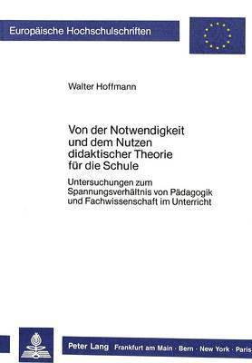 Von Der Notwendigkeit Und Dem Nutzen Didaktischer Theorie Fuer Die Schule