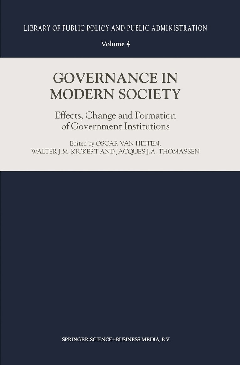 Tremendous changes are affecting the institutions of government in many Western European countries. Globalisation, European integration, economic, technological, and societal developments have a major influence on public policies and governmental performance. These developments have furthered a framework in which governmental and non-governmental actors are linked by both reciprocal connections and more complex network relationships. This volume attempts to identify and analyse the effects, the change, and the formation of government institutions in relation to the above-mentioned developments. More specifically the following topics are discussed: the European Union as a system of multi-level governance, national government institutions and policies, change of government institutions and changing state-society relations, new public management reforms, ICT and changing organizational boundaries, political institutions and policy-oriented learning, management of public-private partnerships, interactive policy making, and structural legal institutions.This volume will be of particular interest to administrators, researchers, policy makers, and students in the field of public administration and public policy.