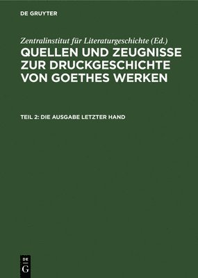 Quellen Und Zeugnisse Zur Druckgeschichte Von Goethes Werken, 1. Gesamtausgaben Bis 1822