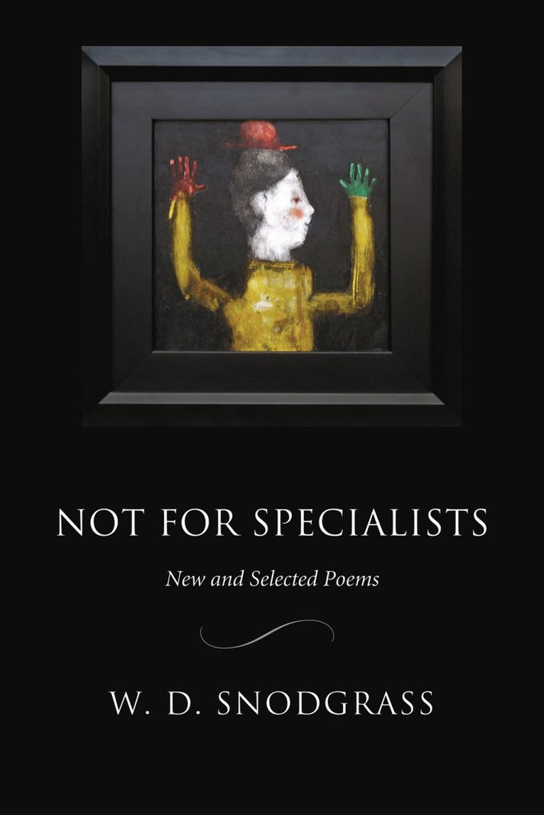 Until the late 1970s, W. D. Snodgrass was known primarily as a confessional poet and a key player in the emergence of that mode of poetry in the late 1950s and early 1960s. Snodgrass makes poetry out of the daily neuroses and everyday failures of a man-a husband, father, and teacher. This domestic suffering occurs against a backdrop of more universal suffering which Snodgrass believes is inherent in the human experience. Not for Specialists includes 35 new poems complemented by the superb work he wrote in the Pulitzer Prize winning collection, Heart's Needle, along with poetry from seven other distinguished collections. from "Nocturnes" Seen from higher up, it makes its first move in the low creekbed, the marshlands down the valley, spreading across the open hayfields, the hedgerows with their tops still lit, laps the roadbed, flows over lawns and gardens, past the house and up the wooded hillside back behind us till only some few rays still scythe between the treetrunks from the far horizon and are gone. W. D.Snodgrass, born in Pennsylvania in 1926, is the author of more than 20 books of poetry, including The Fuehrer Bunker: The Complete Cycle (BOA, 1995); Each in His Season (BOA, 1993); and Heart's Needle (1959), which won the Pulitzer Prize for Poetry. His other books include To Sound Like Yourself: Essays on Poetry (BOA, 2002), After-Images: Autobiographical Sketches (BOA, 1999) and six volumes of translation, including Selected Translations (BOA Editions, 1998), which won the Harold Morton Landon Translation Award.