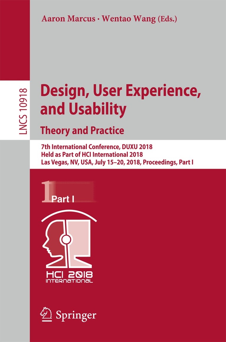 7th International Conference, DUXU 2018, Held as Part of HCI International 2018, Las Vegas, NV, USA, July 15-20, 2018, Proceedings, Part I